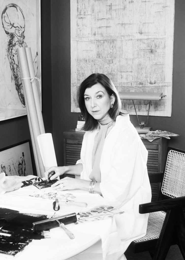 No matter the number of guests or family members, the tables of Rebekka Notkin’s home are always decorated with antique vases full of fresh flowers from the garden or the nearby florist, and the walls are filled with one of her great passions: art.